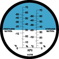 丙二醇測量范圍:P.G 0 至 70%, 0 至 -50°C;最小標度:5°C / 5%量的凍結溫度。