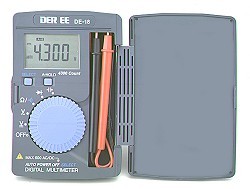 - 關(guān)鍵參數(shù):DE-18 迷你袋裝萬用表 .DCV:2%+5. Ω:1.2%+2/2%+3/5%+3 最大輸入電量:600V