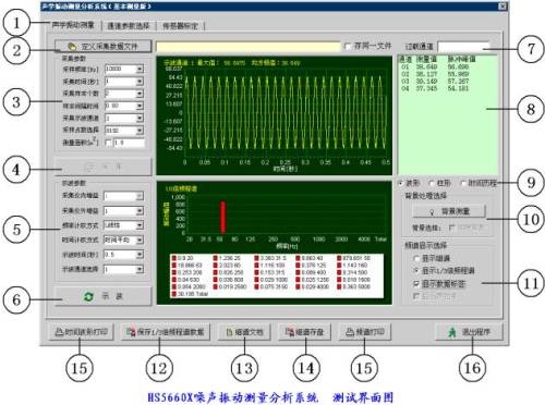 HS5660X型噪聲振動(dòng)測量分析系統(tǒng)是一種以計(jì)算機(jī)為中心,配套精密、高速、多通道噪聲振動(dòng)信號同步測量分析系統(tǒng),可進(jìn)行大容量數(shù)據(jù)存儲(chǔ)、高速數(shù)據(jù)處理,實(shí)現(xiàn)實(shí)時(shí)FFT細(xì)譜、1/3倍頻程譜、聲壓/時(shí)間歷程分析等等各種時(shí)頻分析。并能自動(dòng)生成各種分析結(jié)果圖表。該系統(tǒng)可根據(jù)用戶需要提供不同配置的聲學(xué)/振動(dòng)分析系統(tǒng),為各類聲學(xué)/振動(dòng)信號做有針對性的詳細(xì)分析,并將實(shí)時(shí)分析的結(jié)果以圖形、列表或報(bào)告的形式輸出。為工程技術(shù)、質(zhì)量管理人員提供詳實(shí)的產(chǎn)品質(zhì)量判據(jù),同時(shí)為產(chǎn)品的研發(fā)設(shè)計(jì)、生產(chǎn)工藝、質(zhì)量控制提出指導(dǎo)性意見。