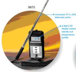 這些袖珍型儀表在使用時只需要很少的培訓(xùn)。它們是進(jìn)行通風(fēng)櫥、噴霧間和通風(fēng)系統(tǒng)的面速度測量以及進(jìn)行室內(nèi)空氣檢查的理想工具。 9880 具有一個