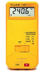 7-600 多用表可安全、自動地測量交流電壓、直流電壓、電阻和通斷性。使用簡單,是真正的“傻瓜表”。7-600“傻瓜表”的自動選擇功能使電力環(huán)境下的電壓測試變得非常簡單。在測量歐姆/通斷性時,如果輸入插孔上的電壓高于4.5V(有意或無意),多用表則會自動切換至交流或直流電壓測量功能,這取決于是交流電壓大還時直流電壓大。其輸入阻抗大約為2k歐姆,可以幫助用戶判斷電壓是來自漏泄還是硬連接。在所有測量模式下都提供過載保護。