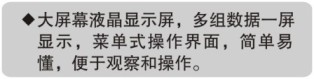 ●大屏幕液晶顯示屏,菜單式操作界面,簡(jiǎn)單易懂。
