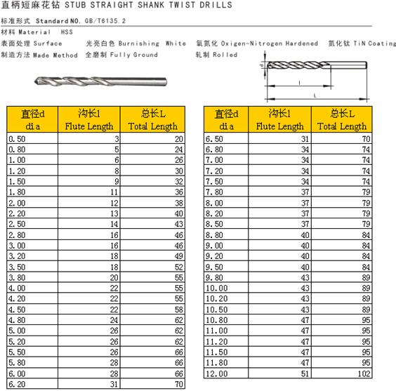 - 儀器名稱:直柄短麻花鉆