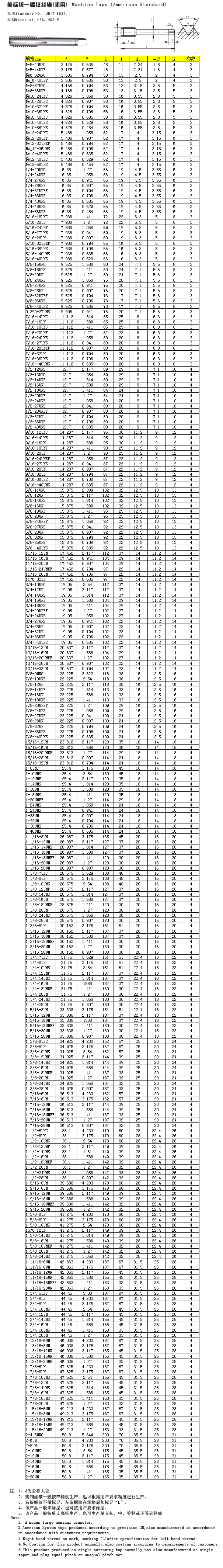 - 儀器名稱:美制統(tǒng)一螺紋絲錐(機用)