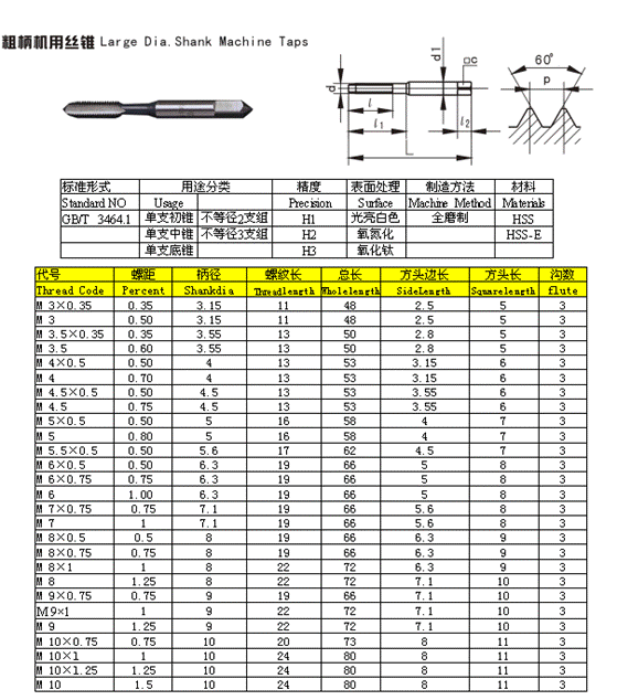 - 儀器名稱:粗柄機(jī)用絲錐