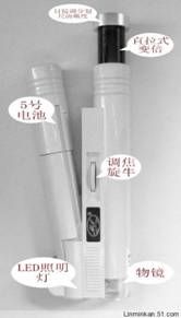 4、兩邊拉開電池盒部份燈就會(huì)亮,把觀察物放在防護(hù)罩中心,把眼睛對(duì)準(zhǔn)目鏡,調(diào)節(jié)調(diào)焦齒輪,至看清為止。變倍時(shí)直接把目鏡拉出實(shí)現(xiàn)變倍,然后再調(diào)焦直到看清為止。