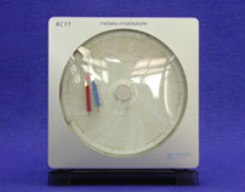 The KC11 provides recording of RH and temperature (available in both Centigrade or Fahrenheit models) for 1 day (24 hours), 8 days, or 32 days – switch selectable. The KC11 has earned the respect and admiration worldwide for being a very economical solution to portable, temporary and permanent recording applications. It is operated with two "AA" 1.5 volt batteries and operates for up to one full year on this simple power source. The KC11 is in stock in our U.S.A. warehouse for immediate delivery.