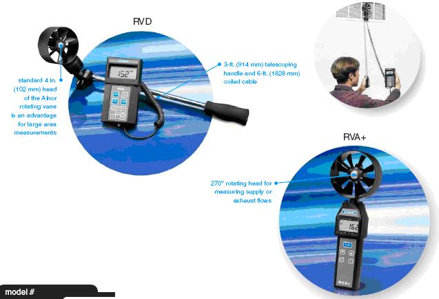 旋轉(zhuǎn)葉片風(fēng)速計(jì)可測量真實(shí)空氣速度,讀物無需進(jìn)行密度校正因子修正。 RVA+ 的用戶可通過按單側(cè)按鈕并對(duì)被測量區(qū)域進(jìn)行“掃描”而獲得面積平均流量。 RVD 提供了伸長測量以及數(shù)據(jù)記錄、調(diào)用和下載功能。