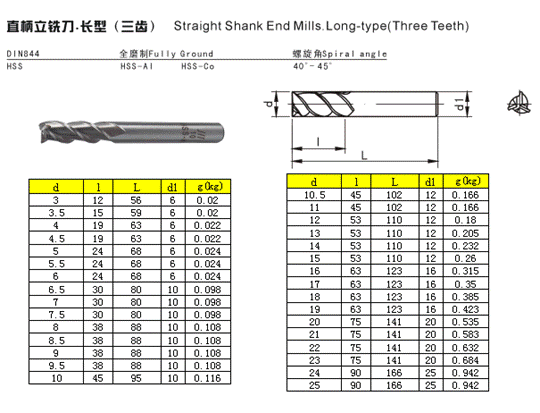 - 儀器名稱:直柄立銑刀·長(zhǎng)型(三齒)