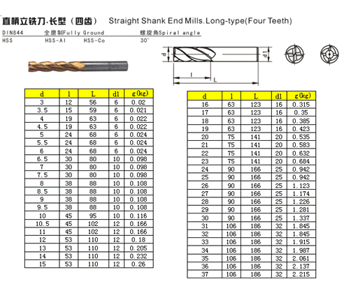 - 儀器名稱:直柄立銑刀·長型(四齒)