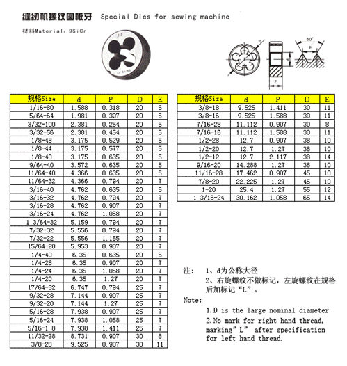 - 儀器名稱:縫紉機(jī)螺紋圓板牙