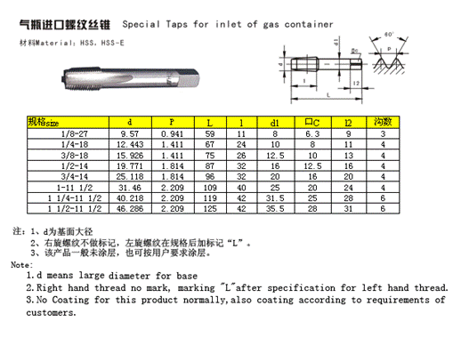 - 儀器名稱:氣瓶進口螺紋絲錐