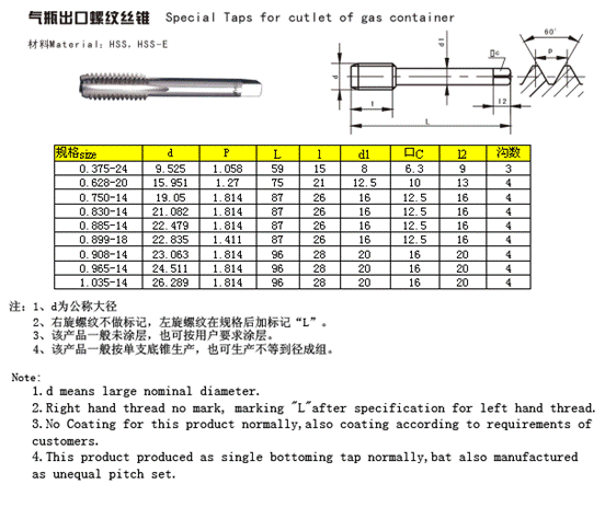 - 儀器名稱:氣瓶出口螺紋絲錐