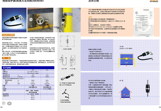 地極保護器480和481,可用于例如,兩個距離較近的獨立地極之間的等電位連接;絕緣法蘭的絕緣保護;與防雷擊接地網(wǎng)有可能超出1KV以上電壓的金屬部件,放置在雷電來臨會產(chǎn)生空氣放電的危險。